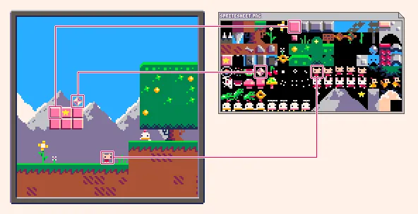 Depending on your game engine or target platform, the answer could be “that’s just how it works”. For example, PICO-8 doesn’t support loading and drawing separate image files. There’s only one spritesheet that has to contain everything, and its size is limited to 128x128 pixels (this is why Spooky Stylin’ needed to use some clever Spritesheet Tricks). A lot of “retro” consoles had similar constraints as well due to limitations of the technology.